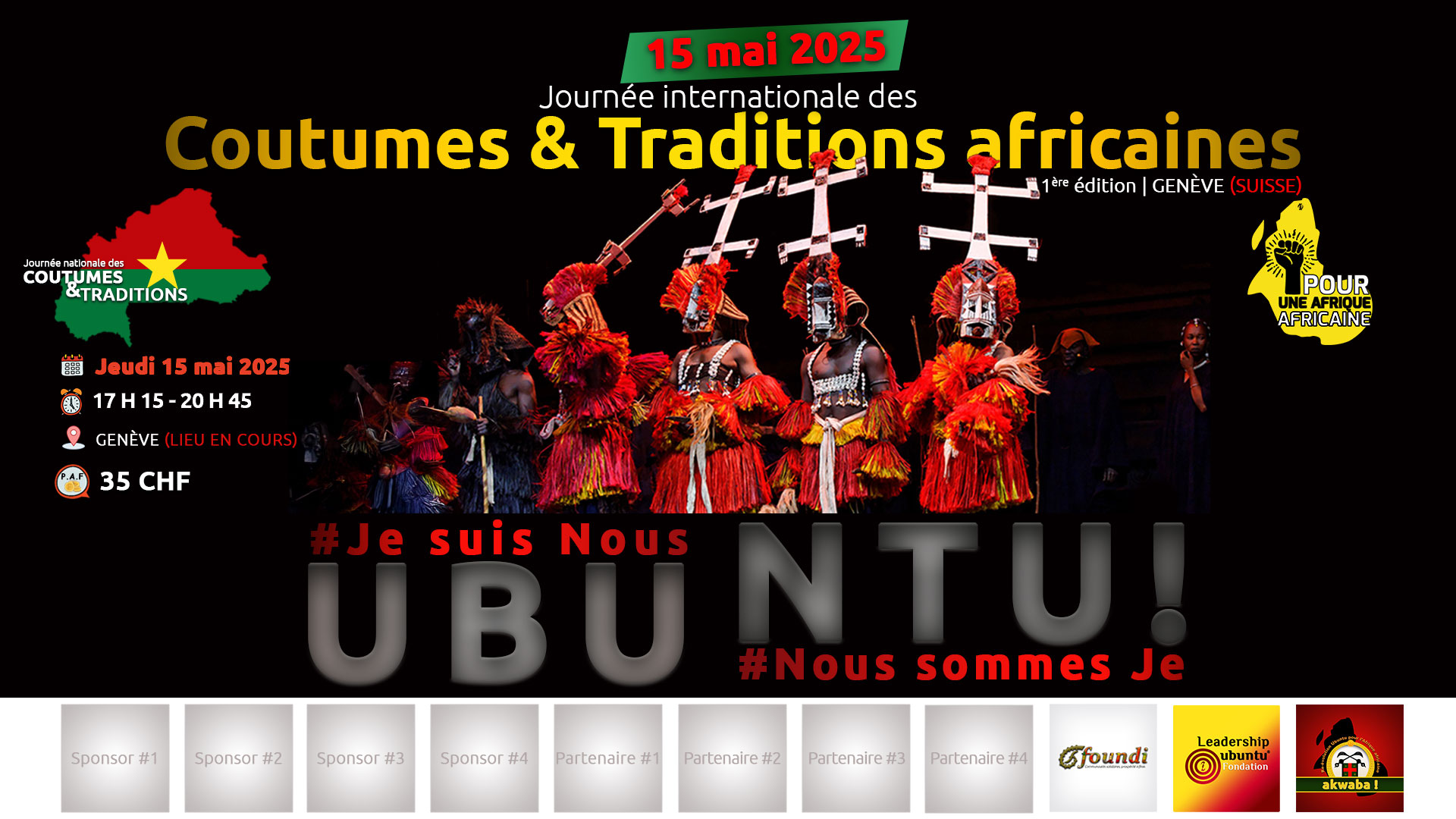 Ce 15 mai 2025, Genève sera le théâtre d’un événement historique : la première édition internationale de la Journée des Coutumes & Traditions africaines. Co-organisée par la Fédération Foundi® et Akwaba ! La Ré-évolution Ubuntu®, cette journée invite les Africains de la diaspora vivant en Suisse et dans les pays voisins à faire un grand écho à la JOURNÉE NATIONALE DES COUTUMES ET TRADITIONS, instituée officiellement au Burkina Faso en 2024. Placée sous le thème central "Culture & Représentativité : Quelle Afrique portes-tu en toi et avec toi dans le monde ?”, cette initiative vise à promouvoir une Afrique authentiquement africaine, consciente de sa richesse culturelle et de son rôle dans la construction d’un nouvel ordre mondial, plus juste et respectueux du vivant.