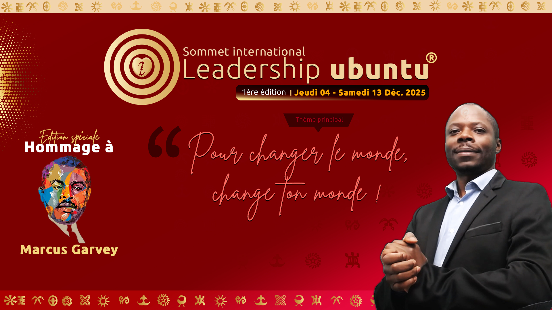 Paris, le 17 Octobre 2024 – La Fondation du Leadership Ubuntu, organisatrice du premier Sommet International du Leadership Ubuntu, a annoncé aujourd’hui le report de l’événement à une date ultérieure, du jeudi 04 au samedi 13 décembre 2025. Le sommet est placé sous le thème « Pour changer le monde, change ton monde », et rendra hommage à Marcus Garvey, figure emblématique du combat pour la libération totale de l'Afrique. Cette décision, mûrement réfléchie, vise à offrir un événement encore plus riche, et plus retentissant, à la hauteur des enjeux sociétaux, marqués par la grave crise géopolitique mondiale.
