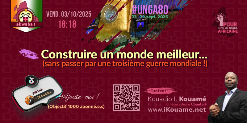 Ce message historique sera adressé au peuple de Côte d'Ivoire ce mercredi 22 octobre 2025 à 17h17 (heure d’Abidjan) / 19h19 (heure de Genève) par Kouadio I. Kouamé — fondateur de l’écosystème Ubuntu® et du Commun Politique « Akwaba ! Ré-évolution Ubuntu pour l’Afrique africaine ».